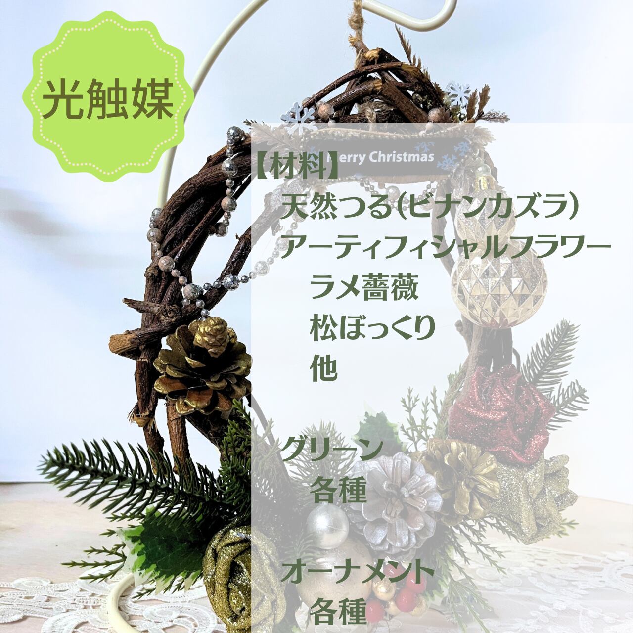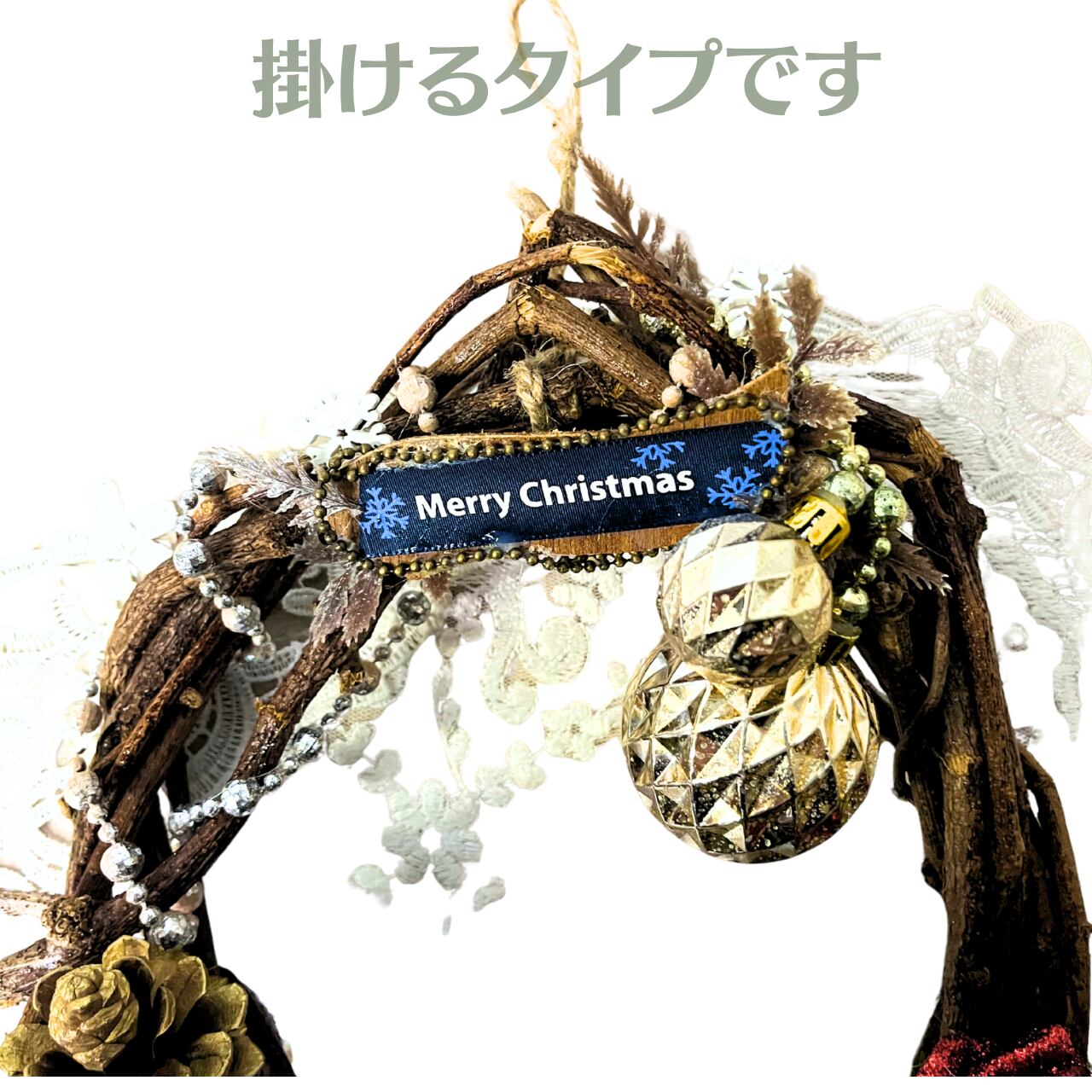Xmas 天然つる リース (掛けるタイプ)【光触媒加工】