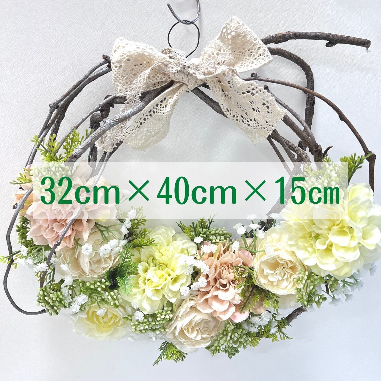 天然つるにアーティフィシャルフラワー(造花)をアレンジした、掛けタイプの作品です。