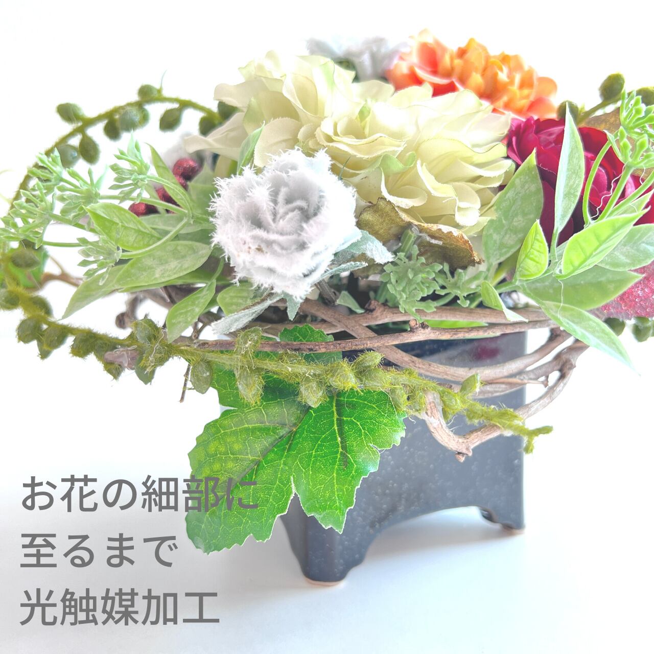 お花畑の天然つるアレンジ(置きタイプ)【光触媒加工】