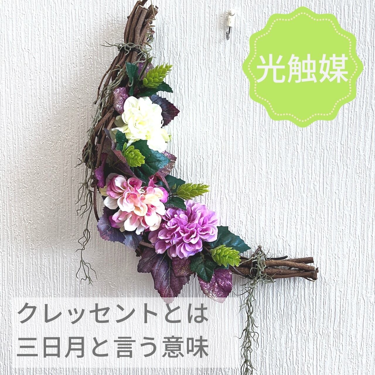 天然つるとダリアのクレセントムーンアレンジ(掛けタイプ)【光触媒加工】