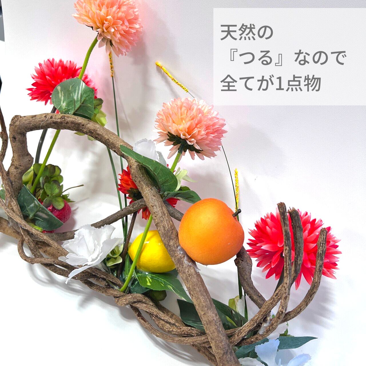 天然つるにアーティフィシャルフラワー(造花)をアレンジした置くタイプです。