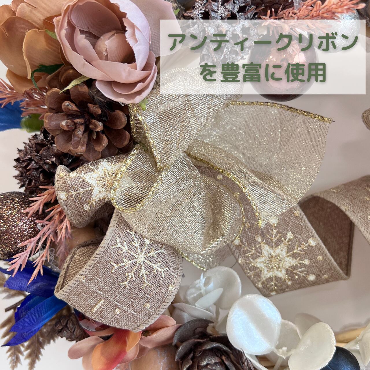 またアンティークリボンを使い木の実の重い感じを和らげています。