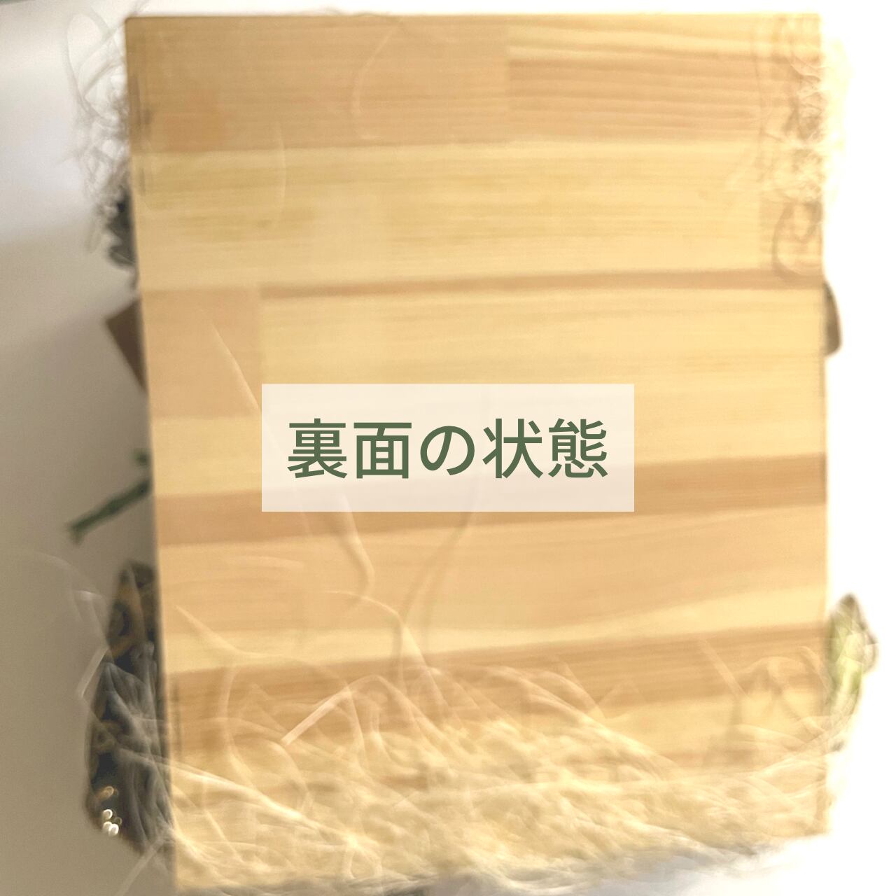 重量感のある天然木を長方形の木板に留めたデザインですが置くための安定も計って作りました。