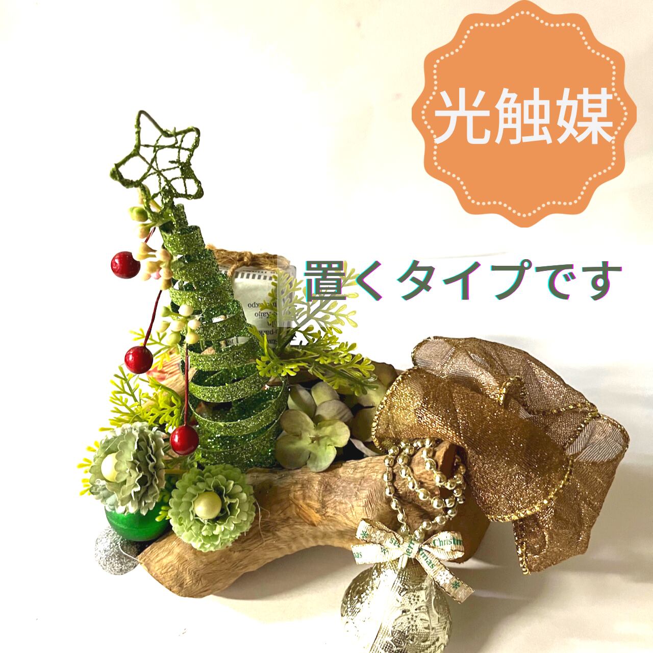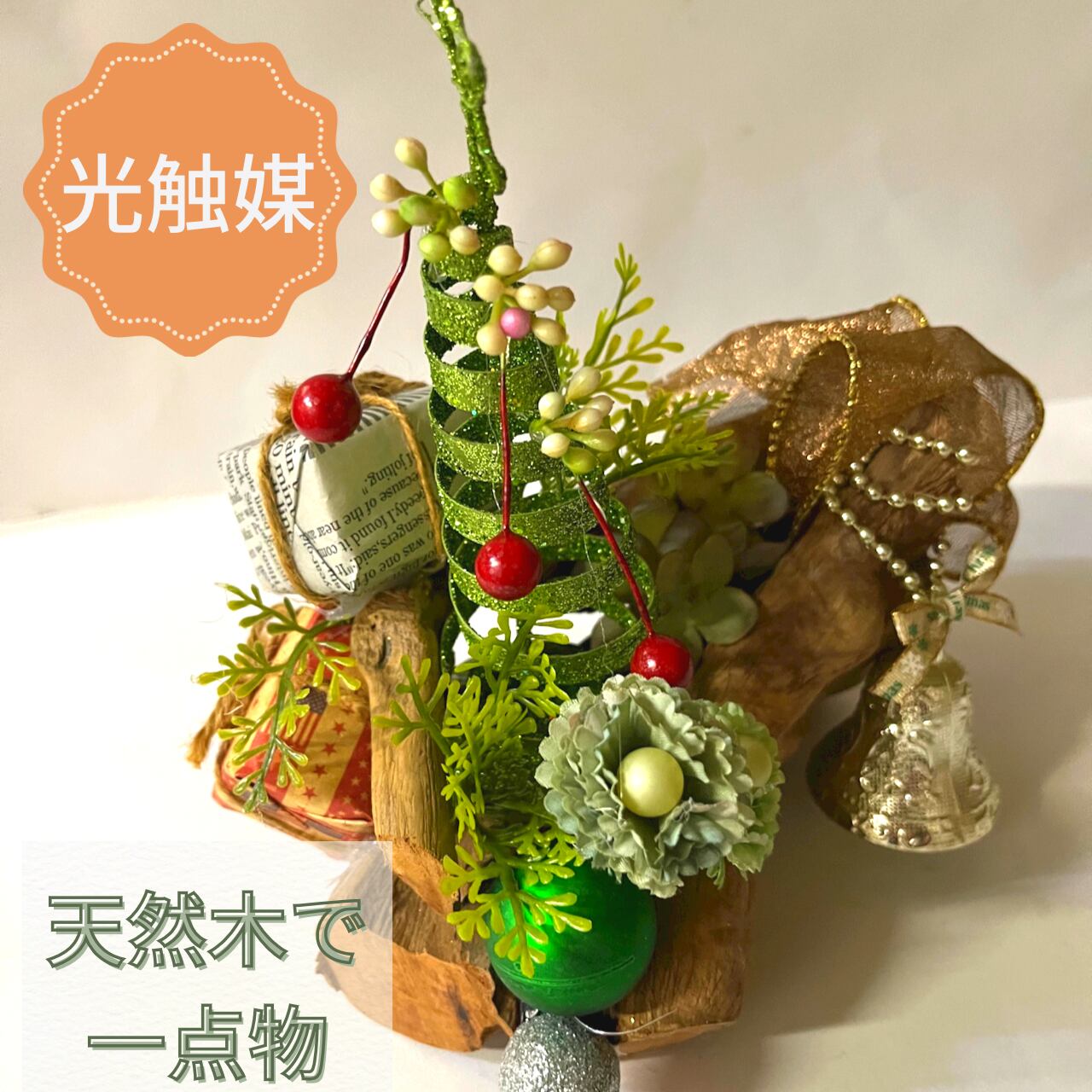天然木とオーナメントを組み合わせたアレンジです。渋めのボク(木)にキラキラがマッチします。