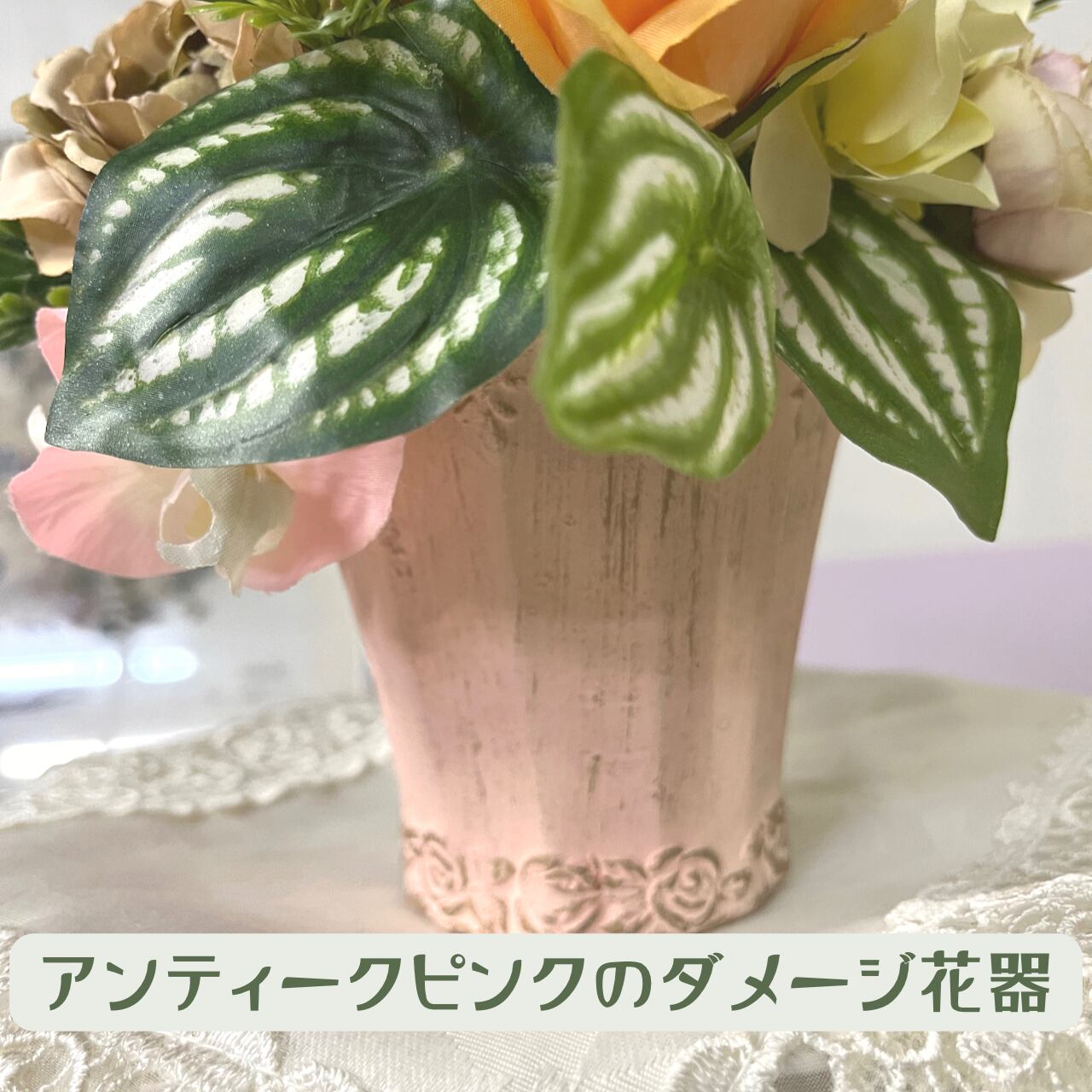 花器もお花に合わせ可愛いピンクなのですが、ダメージデザインとなっておりオシャレ感があります。