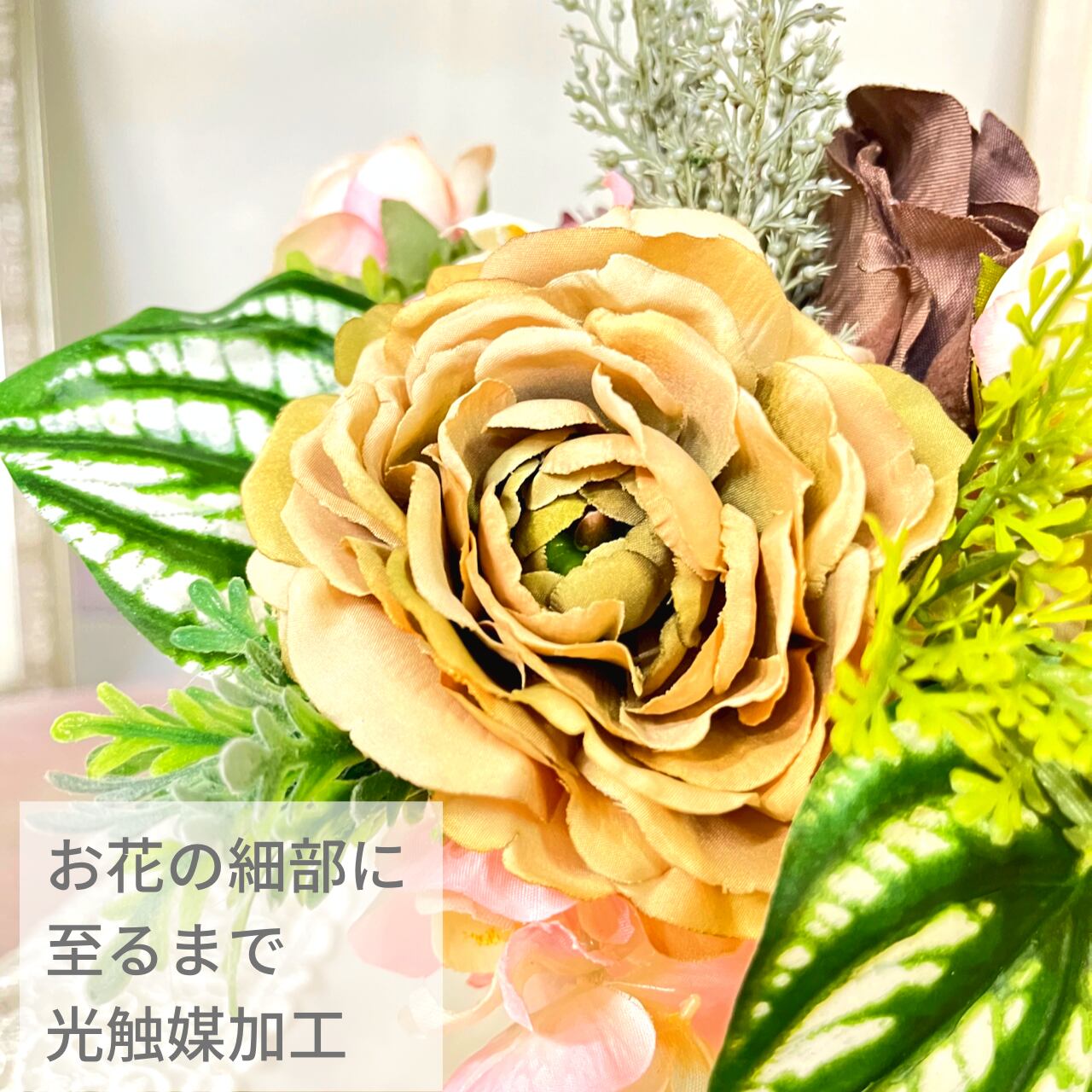 アーティフィシャルフラワー(造花)をアレンジした置くタイプです。