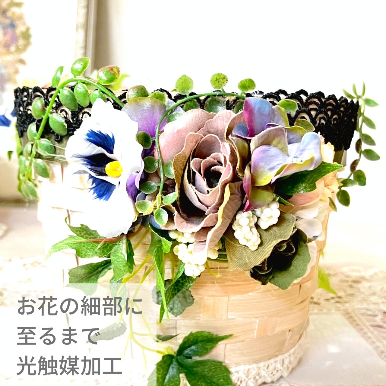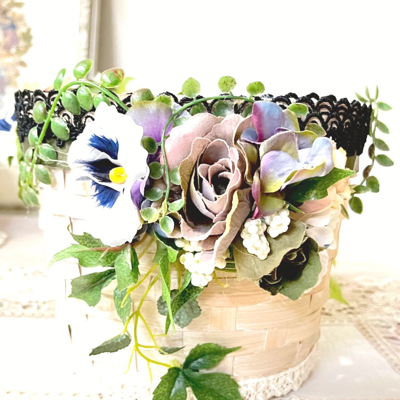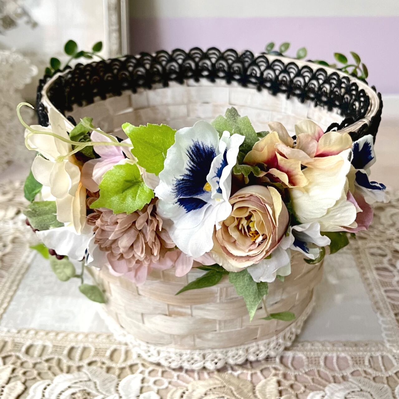 アーティフィシャルフラワー(造花)を竹カゴにアレンジしてみました。