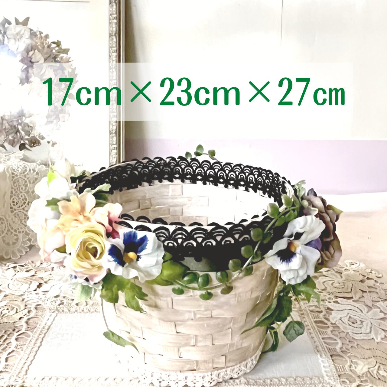 カゴの周りは頑丈にするために強力なテープを着けその上に幅広のブラックのレースを貼り付けています。