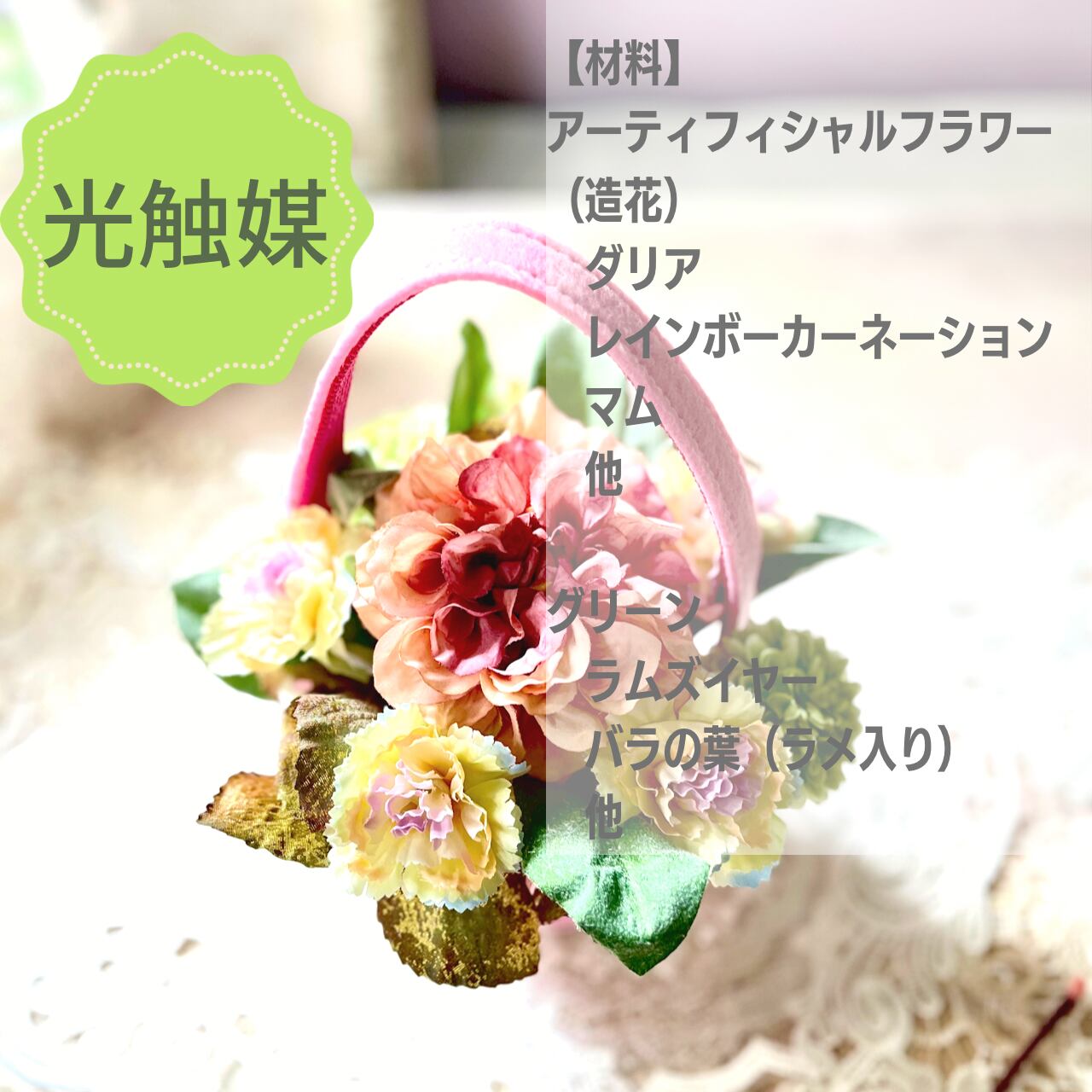 中心にダリアを入れ周りには、とてもカラフルで可愛いレインボー色のカーネーションを使って艶やかにしています。