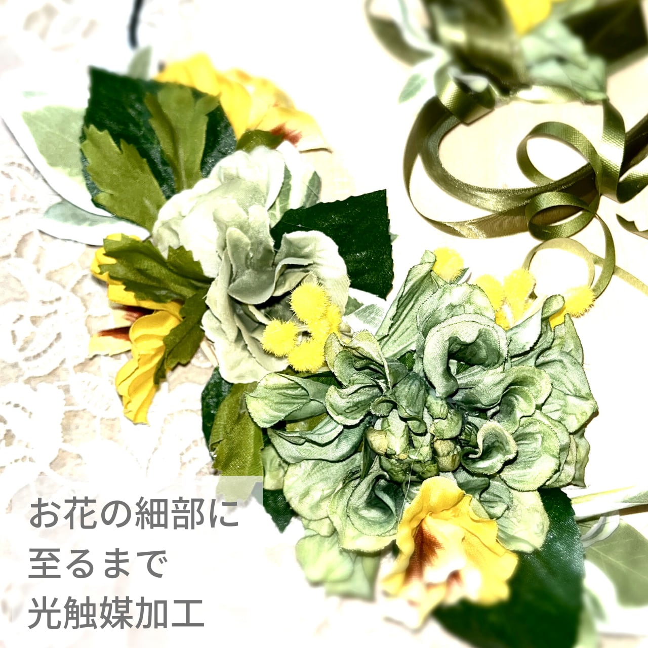 アーティフィシャルフラワーの細部まで『光触媒加工』を施してあります。