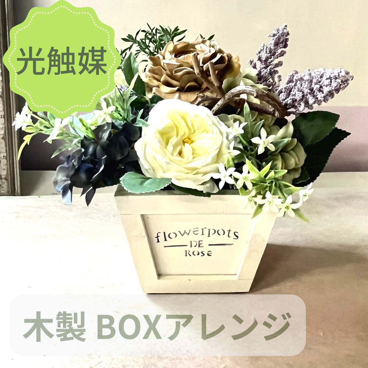 自然素材の温かみが感じられる木製BOXアレンジです。