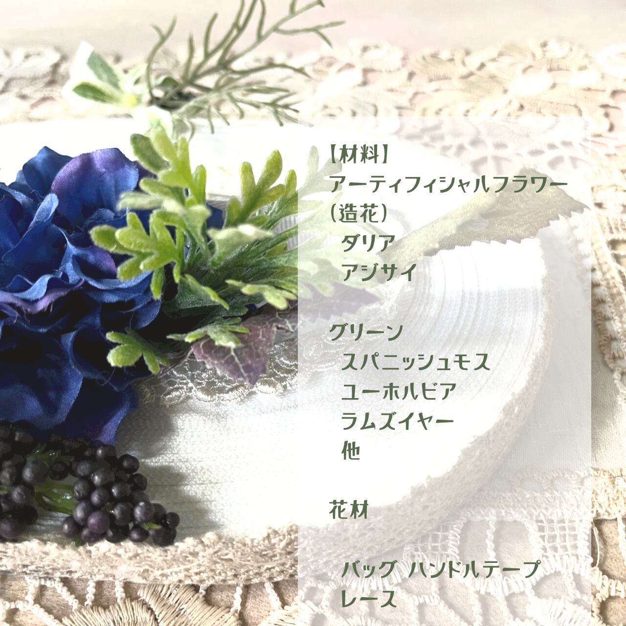 こちらはバッグハンドルテープを横広にした楕円ドーナツフラワーです。