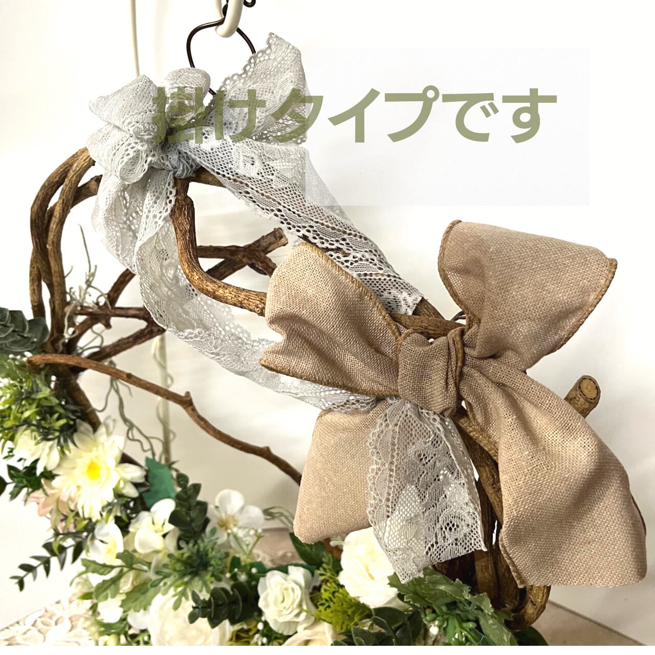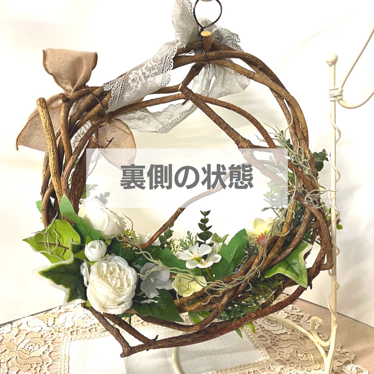こちらは天然つるとアーティフィシャルフラワー(造花)をアレンジした掛けるタイプのリースです。