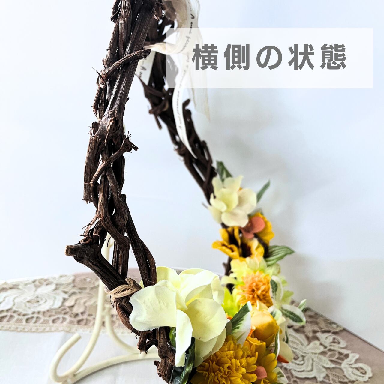 こちらは天然つるとアーティフィシャルフラワー(造花)をアレンジした掛けるタイプのリースです。