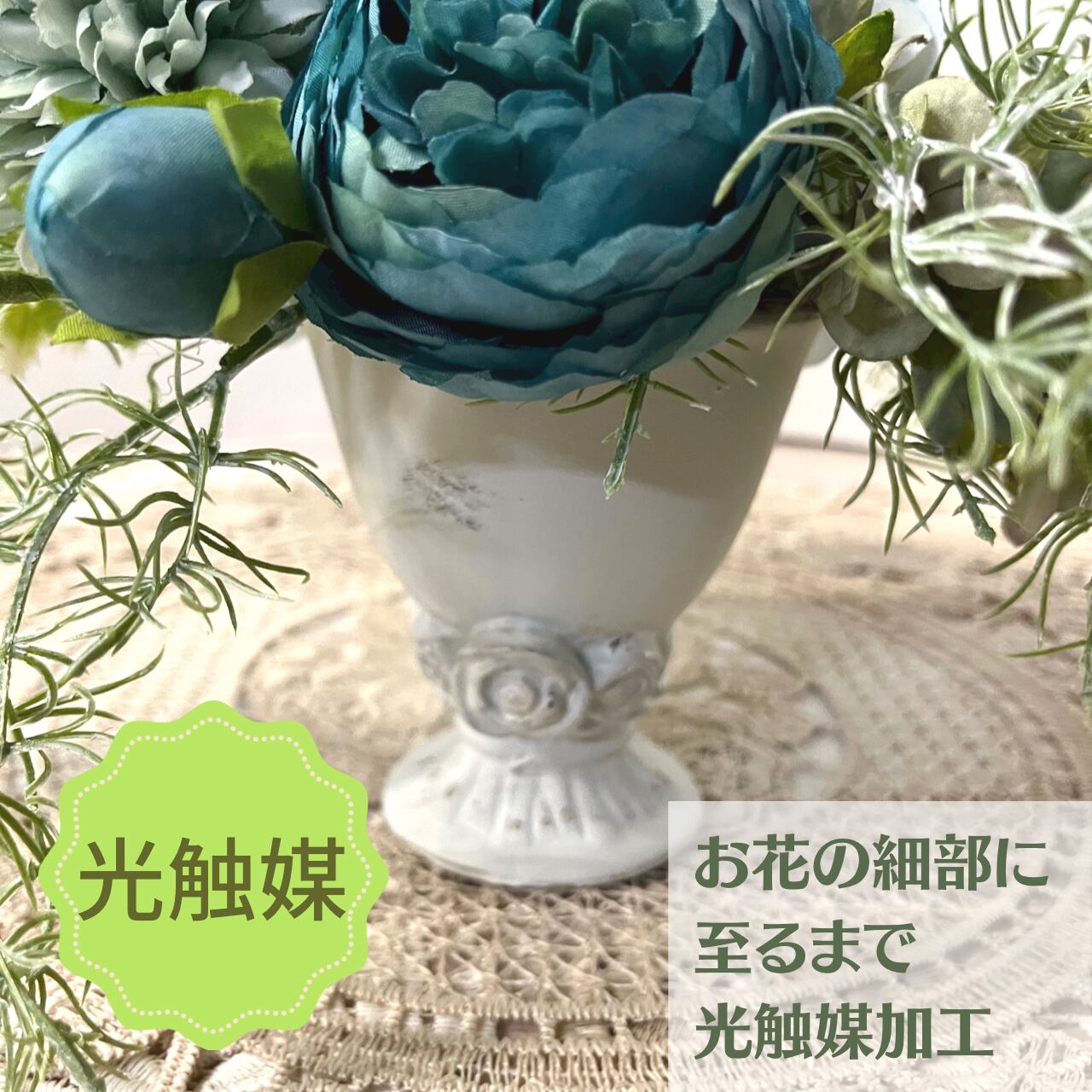 アーティフィシャルフラワーの細部まで『光触媒加工』を施してあります。