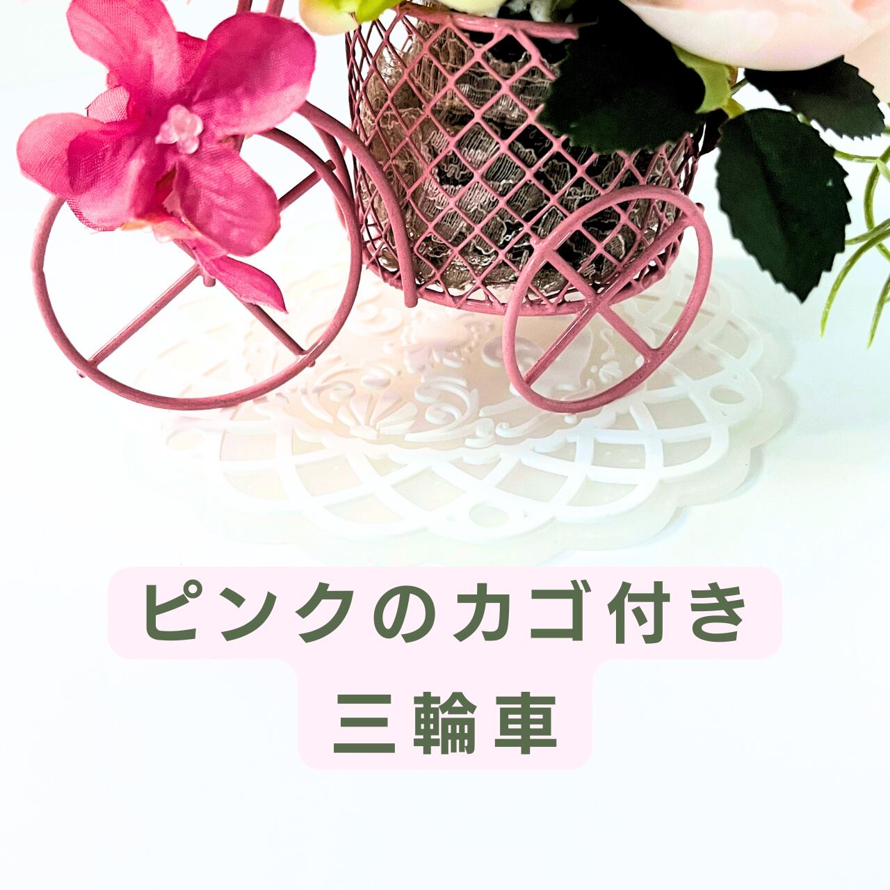 ピンクのカゴ付き三輪車(置くタイプ)【光触媒加工】