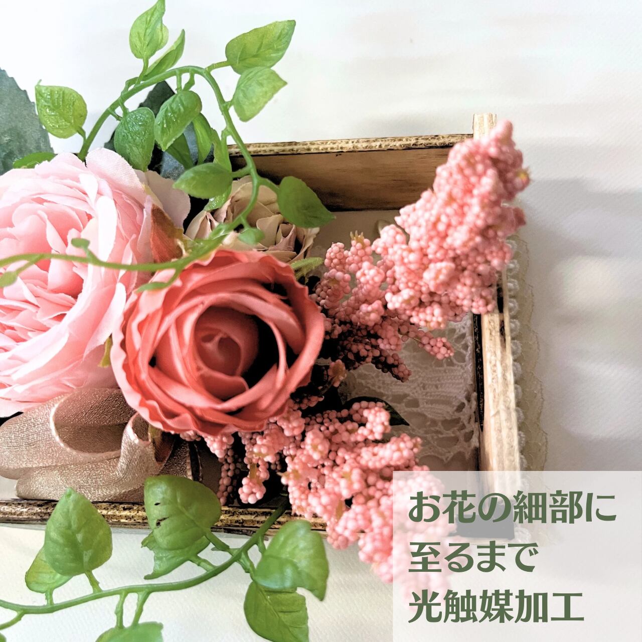 アーティフィシャルフラワーの細部まで『光触媒加工』を施してあります。
