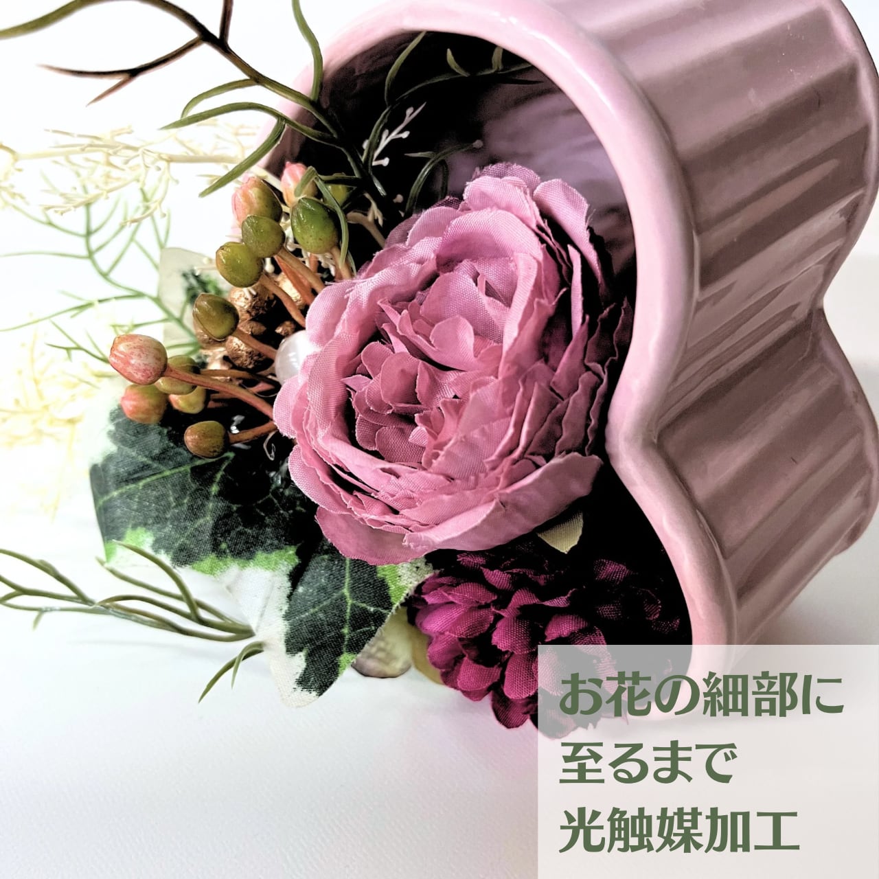 アーティフィシャルフラワーの細部まで『光触媒加工』を施してあります。