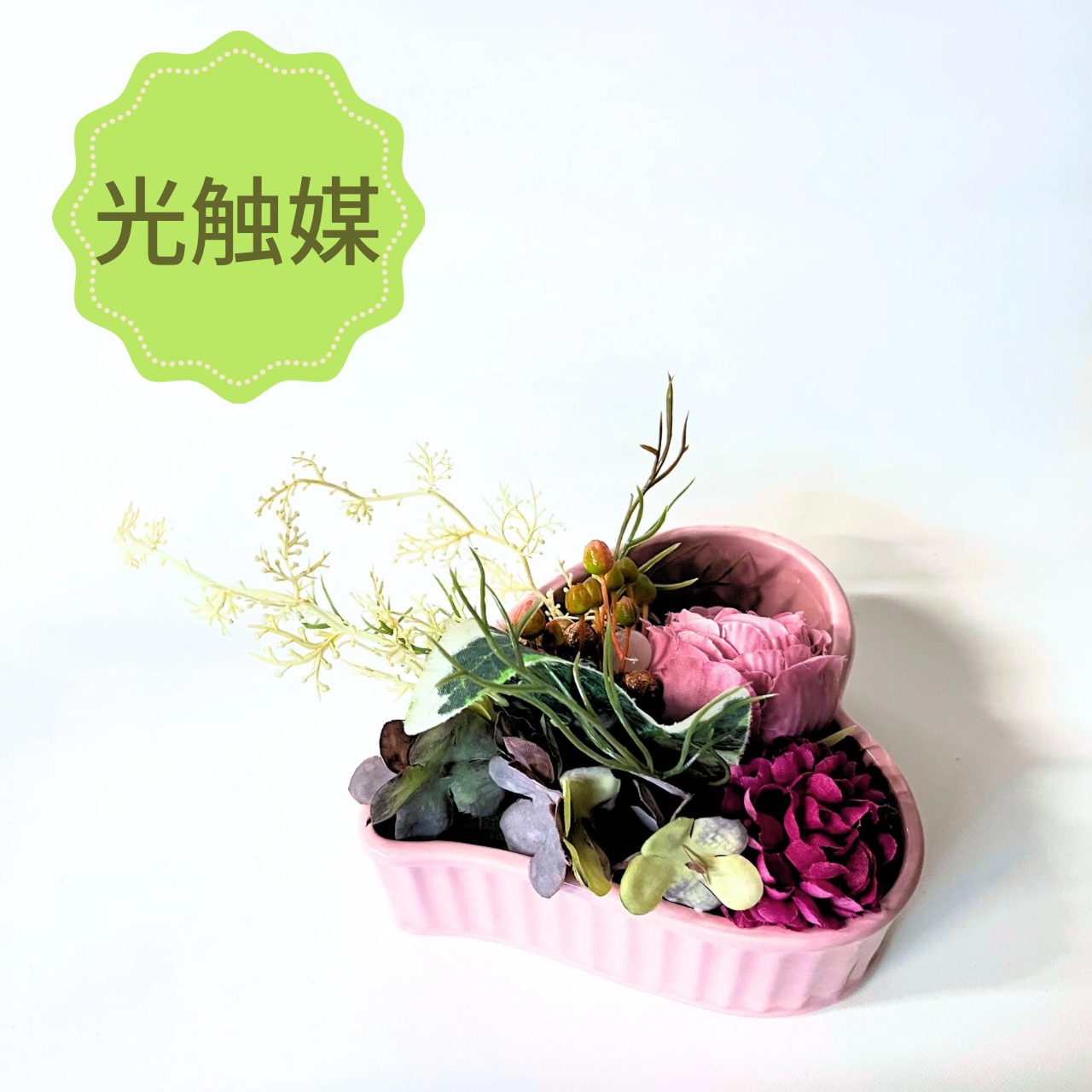 ハート陶器 アレンジ(置くタイプ)【光触媒加工】