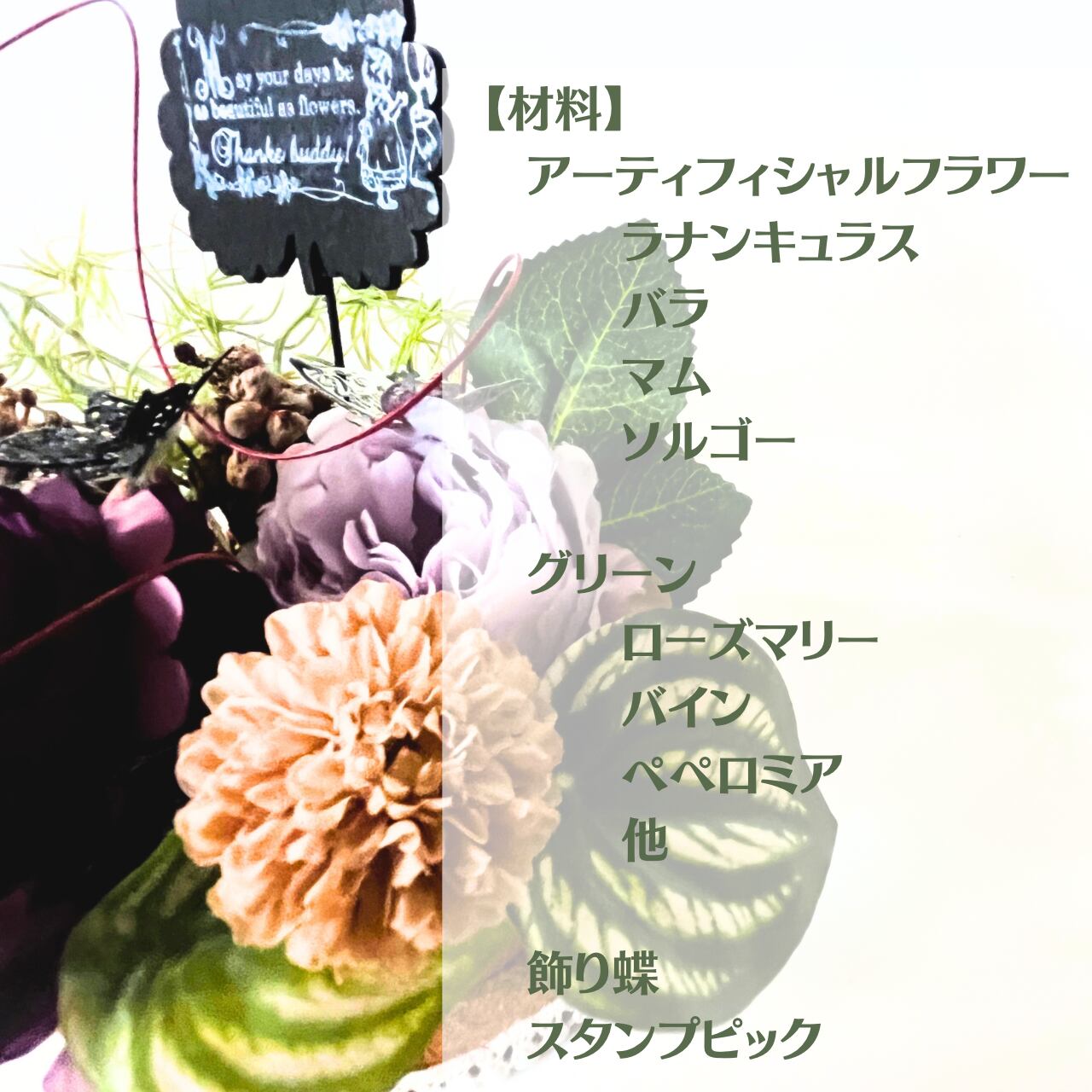 こちらの作品はカラフルカラーの陶器に落ち着きのあるカラーのお花をアレンジしてみました。
