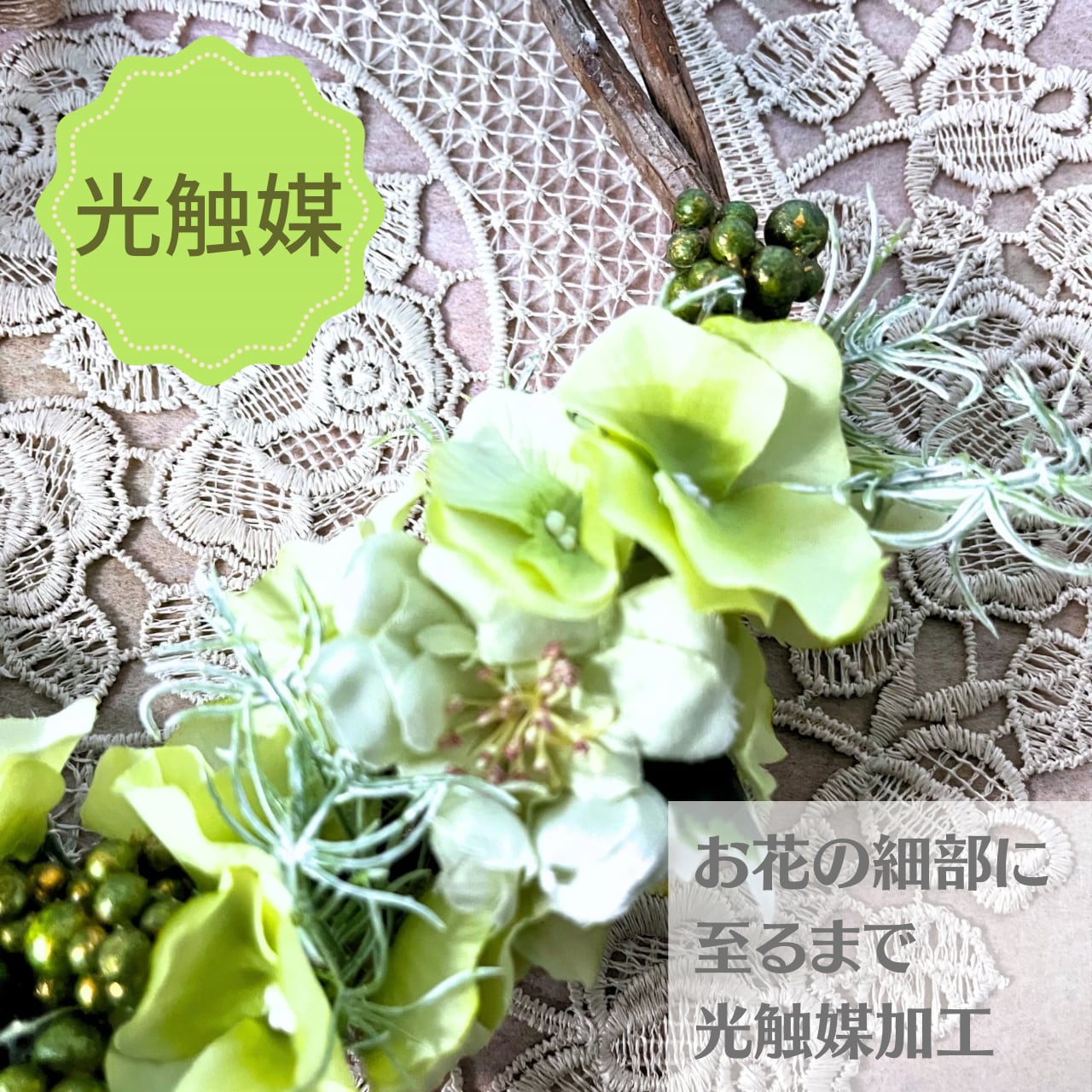 アーティフィシャルフラワーの細部まで『光触媒加工』を施してあります。