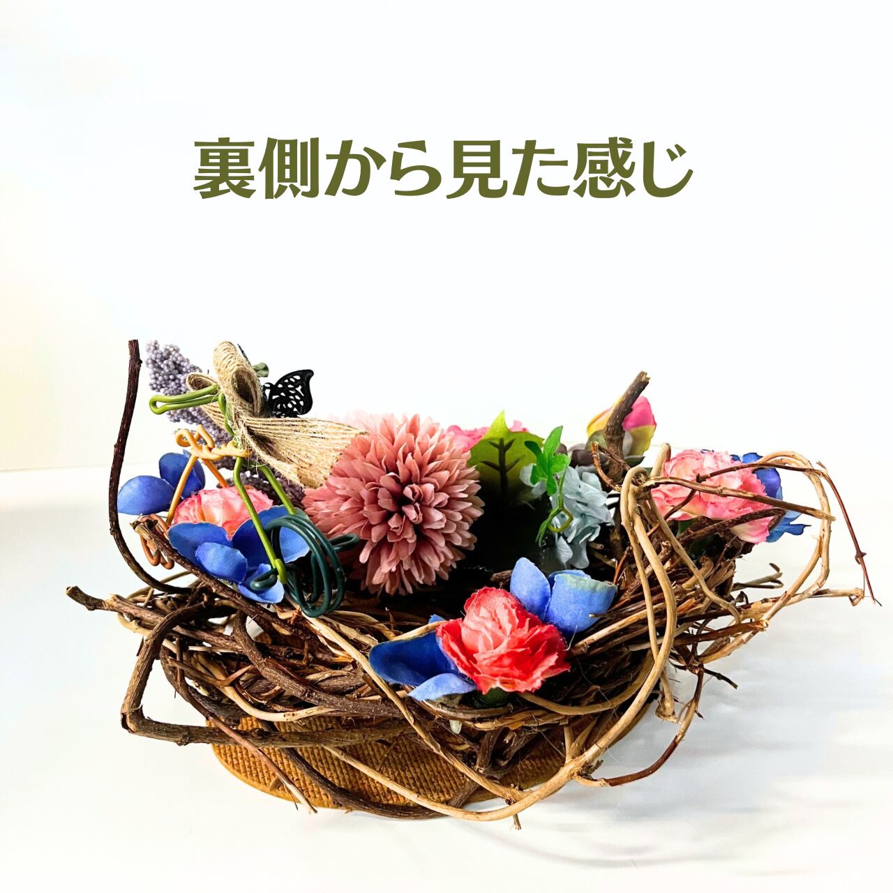 こちらの作品は天然つるにアーティフィシャルフラワー(造花)をアレンジした作品です。